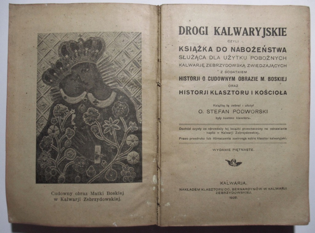 Strona tytułowa Dróg kalwaryjskich Stefana Podworskiego. Z tej książeczki aktor-narrator Adam Woronowicz w filmie Pasja czyta głębokie medytacje. Dzieło miało na przestrzeni lat kilkanaście wydań.